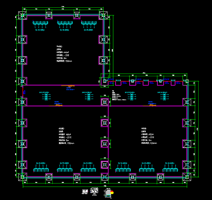 1、冷庫公3個(gè)分間,均為-25度冷凍庫,冷庫外高9米