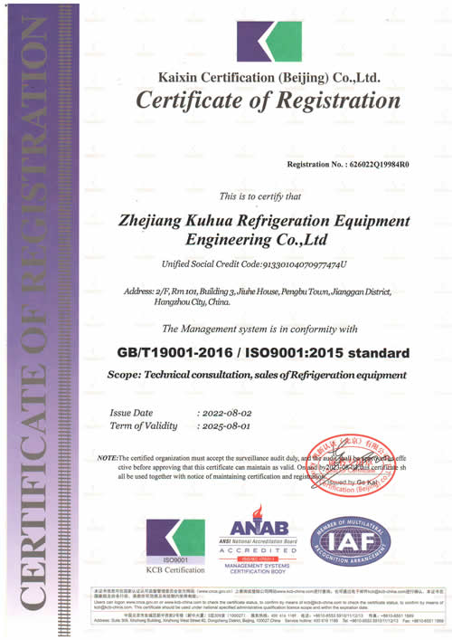 庫(kù)華制冷質(zhì)量管理體系認(rèn)證