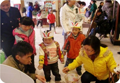 小朋友和家長在領(lǐng)取養(yǎng)樂多呢