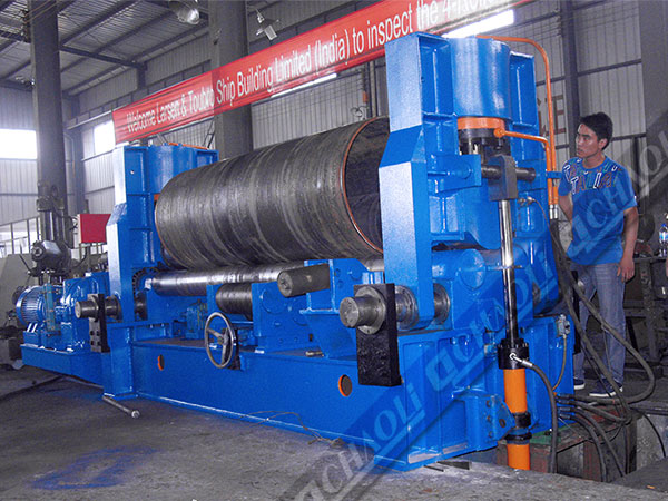 具備板端預(yù)彎功能,通過上輥水平移動(dòng),使上輥相對(duì)于下輥呈非對(duì)稱位置來實(shí)現(xiàn)板端預(yù)彎。