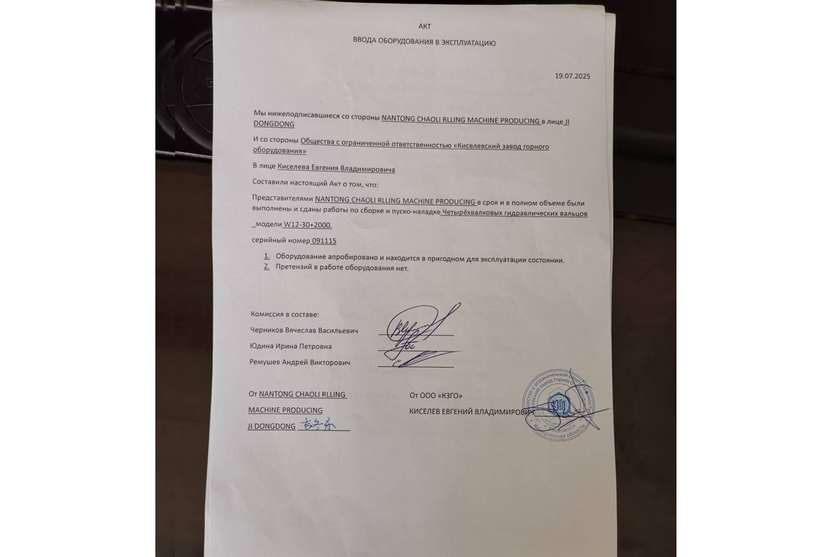 超力卷板機(jī)制造企業(yè)一批卷板機(jī)設(shè)備出口俄羅斯, 順利完成調(diào)試并成功交付,獲得了客戶的高度贊譽(yù)?。